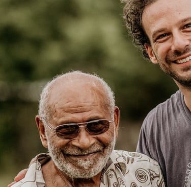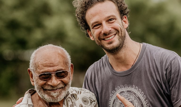 Et puis, quelque part, toujours, il y a Johnny. Mon souvenir de ce passage sur Ra aura toujours la pétillance de son sourire. Il est pourtant facile de ne pas le voir, Johnny. Il n’a jamais dû être grand et il plie un peu sous le poids des années. 92 ou 95 ans, il ne sait plus, il n’a jamais vraiment compté. Ça a l’air lourd, autant de temps. On voit sa canne trembler un peu quand il se déplace, mais il est costaud et vaillant. En fait il est si beau que quand on l’a vu, on ne voit plus que lui ! Quand il rit, son petit corps tressautant donne à son dos vouté et enveloppé d'une chemise à fleurs aux couleurs fanées des allures grandioses de jovialité personnifiée. On n’a pas passé des heures ensemble, pas besoin, et de toute façon il ne tenait pas longtemps en place : il était bien trop occupé à continuer de vivre. Mais on a parlé un peu en même temps que je vérifiais sa vue. C'était laborieux, je ne connaissais que quelques mots de bislama, la langue nationale, et lui ne parlait que motlav, un dialecte dont je ne savais rien avant de poser le pied sur sa terre. Pourtant, avec un peu de patience et beaucoup de connivence, on a fait connaissance. J'ai pu comprendre qu'à Mota Lava, en face, chez ses voisins, il y allait toujours parfois, mais de moins en moins. Que la province des îles Banks, il connaissait bien. Que le Vanuatu aussi, « mais un peu », qu’il m’a dit. J’ai quand même posé la question pour la Calédonie, il m’a répondu « oui, oui, je connais très bien là-bas ! » en rigolant de sa blague, alors j’ai compris que je n’avais pas besoin de demander pour l’Australie, le Pacifique ou le reste du monde.