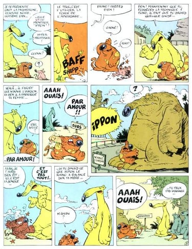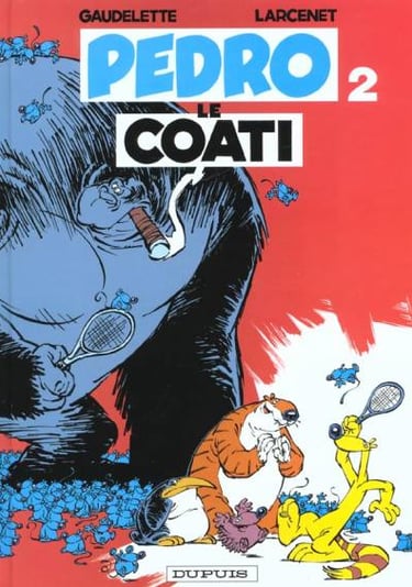 Je viens de réaliser un fait amusant, mon premier contact avec le mot « coati » s’est fait par le biais d’une bande-dessinée, comme pour le kookaburra ! La librairie spécialisée Sac-à-Papier de Saint-Nazaire, en France, m’accueillait depuis mon adolescence aussi souvent que mes finances me le permettaient et Yannick, son propriétaire et unique employé, me conseillait régulièrement. Tout ce grand gaillard pouvait être décrit par le seul mot « motard » tant il en incarnait le stéréotype. Il misait visiblement plus sur son enthousiasme que sur la communication mais il savait avec quels mots me partager ses suggestions : « ça c’est complètement débile, tu vas adorer », avait-il clamé un jour en laissant remuer son cigarillo au coin des lèvres et en me fourrant résolument un exemplaire de Pedro le Coati entre les mains. J’étais parti avec le premier tome des aventures d’une bande d’animaux qui se réunissent entre potes le soir après la fermeture de leur zoo et je crois que j’étais revenu dès le lendemain pour acheter les deux autres volumes existants dont la lecture m’apprit par exemple que les manchots sont pyromanes ou que les coatis sont d’excellents joueurs de belote.