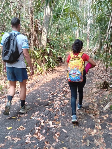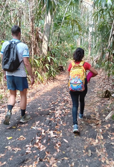 Je ne savais même pas quels animaux je risquais d’observer, je m’en remettais pour ça aussi à Linsa, notre guide. Si tu as connu Yannick-de-Sac-à-Papier, considère que Linsa-de-Carmelita est l’être humain qui s’en éloigne le plus : elle ne jure pas, ne fume pas, elle a une toute petite voix fluette, un tout petit corps frêle d'apparence et même pas de barbichette. L’imaginer sur une moto renvoie la même image que de jouer avec une puce sauteuse en caoutchouc qu’on retourne sur elle-même : si on la pose, elle saute. Elle n’emportait qu’un sac-à-dos d’écolier, pourtant marcher derrière elle donnait l’impression de suivre un bagage coloré à deux jambes et une tresse. Cela dit, je ne sais pas combien de secondes aurait survécu Yannick dans l'immense labyrinthe sauvage au sein duquel Linsa marche plusieurs milliers de kilomètres par an.