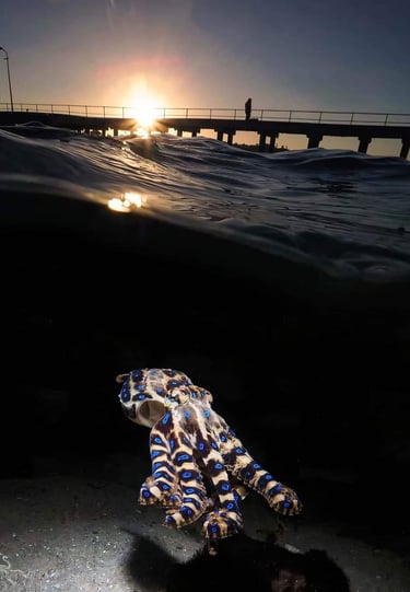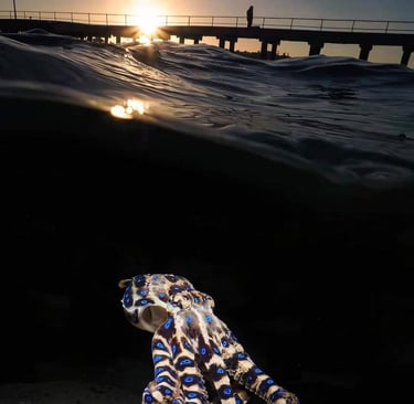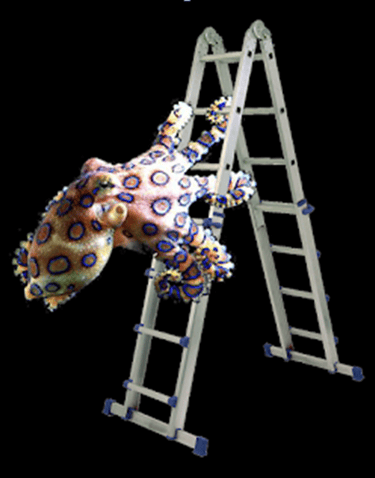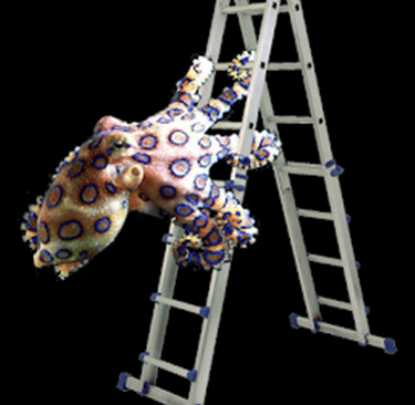 Déjà, oui, malgré son nom curieusement laconique, c’est un vrai animal qui existe vraiment dans la vraie vie. Si ça avait été une blague j’aurais parlé de poulpe à dents de sabre ou quelque chose d’un peu foufou, pourtant il s’agit d’un animal aussi intéressant qu’il est mou. Le hapalochlaena maculosa n’est pas bien gros, il se cache facilement n’importe où (en bon poulpe qu’il est) et il n’arbore généralement rien de distinctif, contrairement à ce que son nom laisse penser. En fait, ses anneaux apparaissent surtout avec le stress, comme pour indiquer sa dangerosité à un potentiel prédateur. Ça lui sert d’anneaux de signalisation. Mais quand il se sent à l’aise, qu’il a bien dormi et bien mangé ou quand sa semaine de taf n’est pas trop chargée, il ressemble à un Poulpe Sans Anneaux Bleus. Plus ou moins à n’importe quel poulpe, donc.