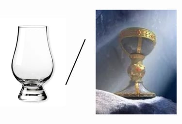 À gauche : un verre à whisky de chez Glencairn Crystal, avec sa forme caractéristique en tulipe.