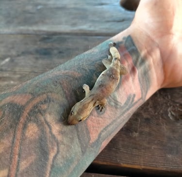 Ci-dessus, un gecko/margouillat. Ces lézards sont généralement aussi vifs que craintifs mais Tony, qui posait pour cette photo, est un pote.