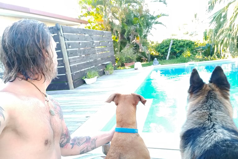 Je me reprends mentalement, si cette dernière vanne me fait marrer je me freine pour ne pas laisser des actualités moroses entacher ma bonne humeur, ni quand je flotte dans la piscine ni quand j’écris ces quelques lignes, et je remets à dériver mon corps d’abord puis très vite mon esprit. C’est une nouvelle étape que j’ouvre en revenant sur cette île, la Grande Terre, la principale de l’archipel néo-calédonien, celle qu'on surnomme affectueusement le Caillou. Je ne pourrais pas le faire monter en collier mais je le porte dans le cœur, ce petit territoire qui m’a déjà tellement vu vivre. Bientôt je profiterai à nouveau de son lagon en apnée, en bateau ou en surf. Bientôt je profiterai à nouveau de ses forêts à cheval, à moto ou à pied. Déjà je sais que j’en tirerai de beaux souvenirs à garder dans la tête, sur la peau… et à te raconter aussi !